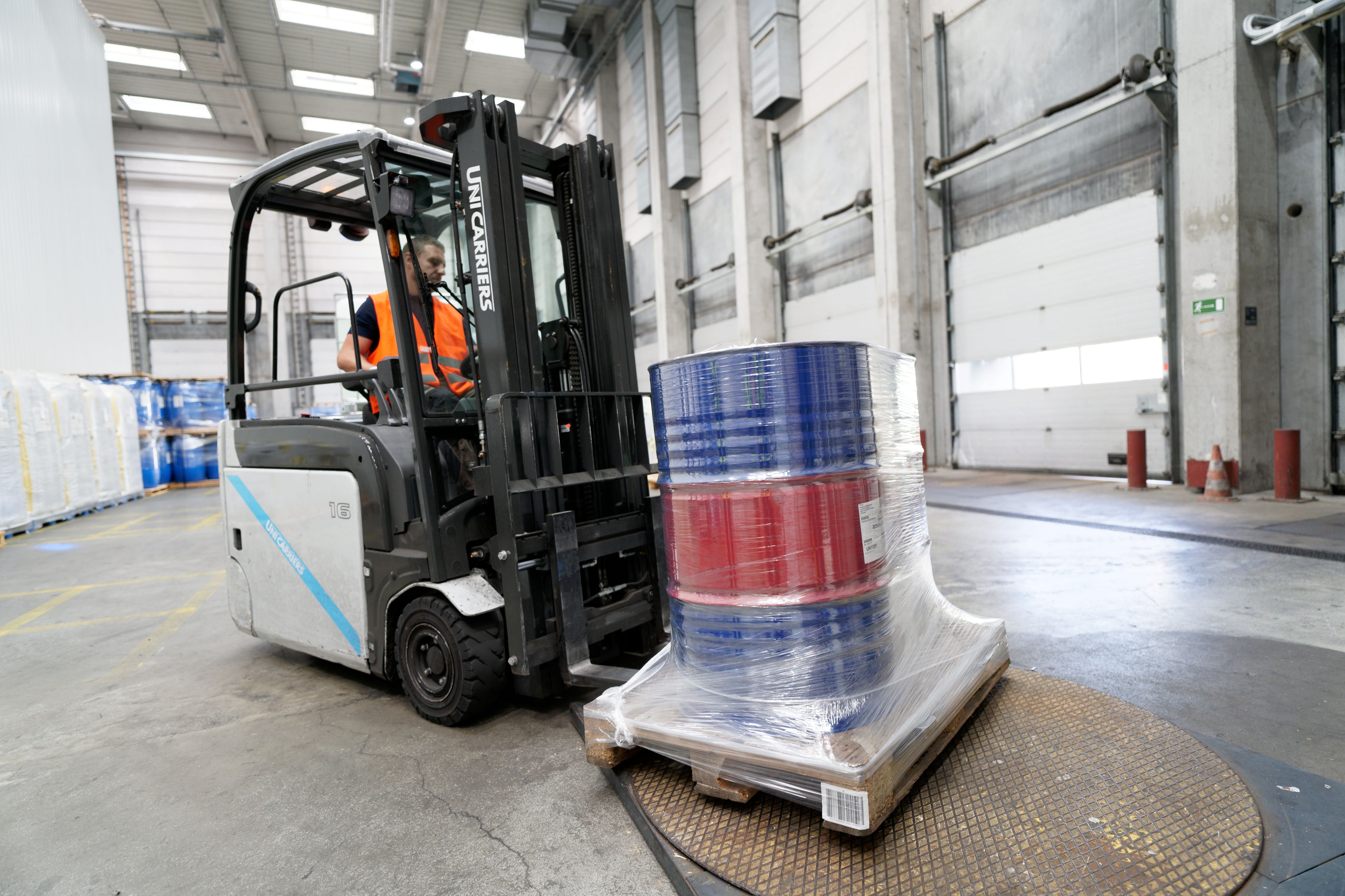 The service portfolio additionally includes on-site operations, besides warehousing and product handling also specialized services such as filling and drumming of liquid and solid materials, sample management and the safe dispatching of air freight.
